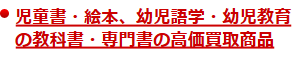 「児童書・絵本、幼児語学・幼児教育の教科書・専門書の高価買取商品」をクリックすると、詳細の内容が表示されます。