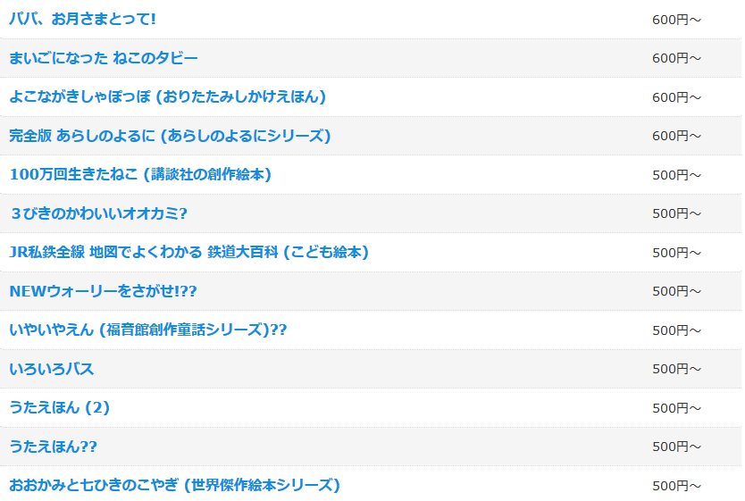 また、以下のようにロングセラーや人気の絵本は、買取保証価格の絵本もあります。